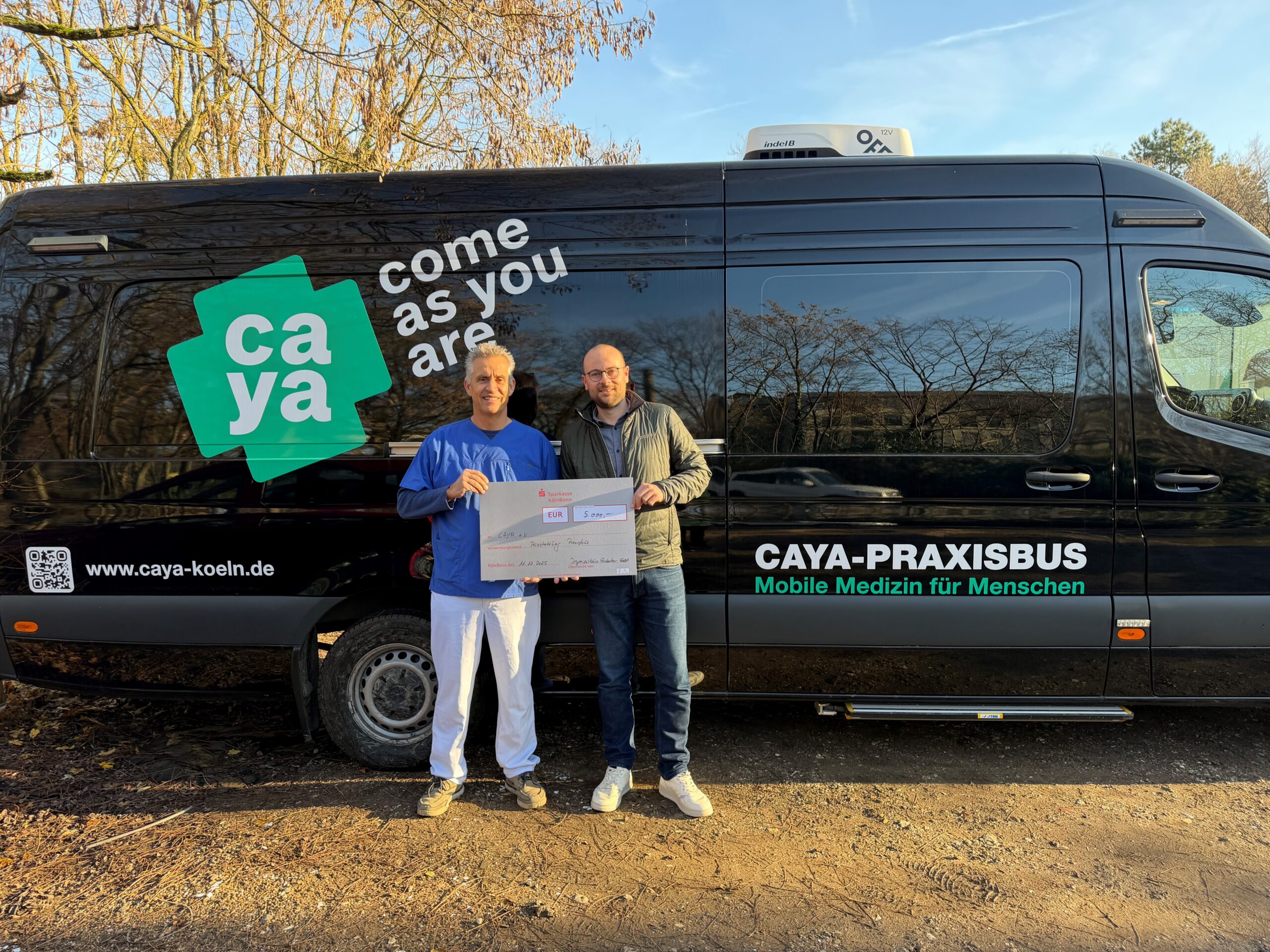 Wir unterstützen CAYA e.V. – eine gemeinnützige Initiative aus Köln, die wohnungslosen und sozial benachteiligten Menschen, oft ohne Krankenversicherung, kostenlose und niedrigschwellige ärztliche Versorgung bietet. Mit dem neuen, voll ausgestatteten Praxisbus kann die medizinische Hilfe direkt zu denen kommen, die sonst nur schwer Zugang zu einer Regelversorgung haben. Wir freuen uns sehr, dieses wichtige Projekt zu begleiten, damit Grundversorgung genau dort ankommt, wo sie am dringendsten gebraucht wird.